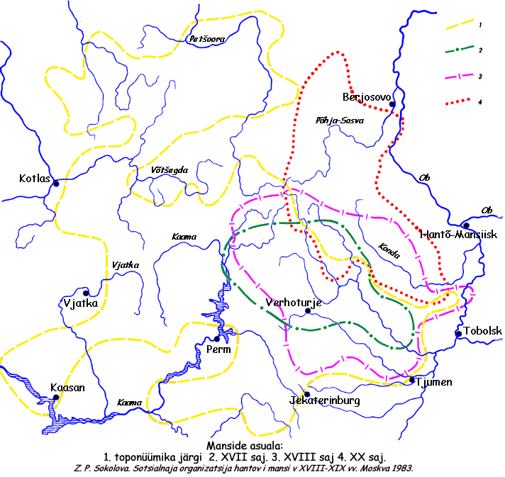 Juba esimese aastatuhande lõpul olevat Novgorod korraldanud sõjaretki jugralaste juurde, kes elasid "koos samojeedidega kesköö maadel" (Bahrushin 1955,1: 86). Ilmselt puutusid venelased tollal kokku veel Euroopas Petshora ülemjooksul komide naabruses elanud mansidega. (Vaata kaarti!) Vogulite (vogulitshi) nime all mainitakse Permi naabruses elanud mansi hõime esmakordselt 1396. aastal. XV saj. vene allikates nimetatakse sama nimega (vogulitshi, gogulitshi, bogulitshi) teisel pool Uuraleid Pelõmi jõe ääres elanud manse (Bahrushin 1955,1: 87). Vogulite nime all tunti manse kuni käesoleva sajandi kolmekümnendate aastateni, alles seejärel hakati laiemalt tarvitama omanimetust mansid (maansi, ka maansi maahhum - 'mansi rahvas'). Novgorodi kroonika teatab 1193. aastal väejuht Jadrei juhtimisel korraldatud sõjaretkest, mis lõppes novgorodlaste väe hävitamisega. Kaotuses süüdistati mõnesid "jugralaste vürstiga ühendust pidanud" novgorodlasi (Bahrushin 1955,1: 75). XIII-XV saj. oli Jugramaa Novgorodi maksualune. Ent andamit õnnestus koguda vaid relvastatud retkede abil. Kroonikates leidub mitmeid sõjakäikude kirjeldusi, kus mainitakse linnustesse varjunud ugri vürstide tugevat vastupanu. Pärast Ustjugi Moskvaga liitmist XIV saj. asendusid novgorodlaste retked moskvalaste omadega. Permi Stefani poolt Võmile rajatud piiskopkond oli XV sajandil peamiseks Moskva kantsiks Permimaal ja itta suunatud retkede lähtekohaks. Näiteks osales 1465. aasta sõjaretkel Jugralaste maale Permi vürst Vassili koos Võmi sõdalastega (Bahrushin 1955,1: 76). Kuid ugrilased ei piirdunud passiivse vastupanuga. Aastast 1455 on teada Pelõmi vogulite sõjakäik vürst Asõka juhtimisel. Moskva vastas 1465. ja 1467. aasta retkedega, kusjuures viimase käigus Asõka vangistati ja toodi Vjatkasse (Bahrushin 1955,2: 113). Aastal 1483 korraldas Moskva sõjaretke Jugra ja Koda vürstide vastu, vangistati "suurvürst" Moldan (samas). 1499. aastal võttis Moskva vürstide Semjon Kurbski, Pjotr Ushatõi ja Vassili Gavrilovi juhtimisel ette suure sõjaretke "Jugramaale, Kudasse (Kodasse) ja gogulitshide vastu". 4000-meheline vägi, mis kasutas liikumiseks koera- ja põdrarakendeid, jõudis Ljapini jõel asunud samanimelise handi linnuseni. (Bahrushin 1955,1: 76-77.) Väidetavasti vallutati retke jooksul 40 linnust ja võeti vangi 58 handi ja mansi vürsti. Kuigi Moskva suurvürst võttis juba XV saj. lõpuaastail endale ka ugrilaste vürsti aunimetuse, ei suutnud Moskva kuni XVII saj. keskpaigani Ugrimaad alistada. Pelõmi mansid jätkasid vasturetki Permi aladele. Nii läks 1581. aasta ajalukku Kaigorodi ja Tsherdõni rüüstamise aastana. Manside ja nendega liitunud tatarlaste väge hindas Moskva 700 mehe suuruseks (Bahrushin 1955,1: 99; 2: 144). Moskva seni üsnagi edutu idapoliitika vallas toimusid pärast Kaasani vallutamist (1552) suured muutused. Riigi äärealadelt ebakorrapäraselt laekunud andamiga leppinud suuraadlike kõrvale ilmus uus jõud - suurettevõtjad, kes tahtsid uutel maadel põhjalikult kanda kinnitada. Juba 1558. aastal palusid Sol Võtshegotski töösturid Stroganovid tsaarilt luba uute maade asustamiseks. Esialgu haarasid soola tootmiseks sobivaid tingimusi otsinud Stroganovid endale Kaama-äärsed maad Lõsva ja Tshusovaja suudmete vahelisel alal, ent laiendasid oma valdusi mõne aasta pärast piki Sõlva ja Tshusovaja jõgesid ning taotlesid 1574. aastal õigust kanda kinnitada "Siberi poolel, Jugra kivide (Uurali) taga, Tagtshei ja Toboli jõgede ja Irtõshi ja Obi ja teiste jõgede ääres". (Bahrushin 1955,1: 96.) Sellest, kui kiiresti kasvas Stroganovide vägevus, tunnistavad omaaegsed katastriraamatud: 1579. aastal paiknes Stroganovide maadel 1 linnake, 30 küla ja asundust 203 majapidamisega ning üks nende poolt asustatud klooster. 1647. aastal aga oli nende valdustes kolm linnakest, neli kindlustatud asulat, 1 slobodaa, 6 kirikuküla ja 231 küla ning asundust 1844 majapidamisega, elanike arvuga 5701 inimest (Bahrushin 1955,1: 97). Ja kõik see ei asunud mitte "inimtühjus paigus" ja "tumedais metsades, metsikutel jõgedel ja järvedel", nagu nad palvekirjas väitsid (samas: 96), vaid manside ja tatarlastega asustatud maadel. Loomulikult ei vaadanud maa põlisasukad rahulikult pealt, kuidas neid "suure vägivallaga" aeti minema "nende vanadelt põlistelt pärusmaadelt" ning "nendele maadele oma külad ja elanikud asustasid, ja nende meemetsad ja koprajahi alad ja kalaveed, millest nad naturaalmaksu maksid, kõik ära võtsid." (Samas: 98.) Nii pididki Stroganovid omakorda tsaarile kaebama. "Aga väidetavasti need, kelle slobodaad asuvad ääremaadel, aga vogulid elavad nende slobodaade lähedal ning paik on metsane, inimestel ja talupoegadel ei lasta kindlustustest väljuda, ega lasta maad künda ega alet põletada. Ja väidetavasti tulevad nad ja väikesed inimesed salaja ning ajavad hobused ja lehmad minema ja tapavad inimesi, ja võtsid neilt slobodaas ära töö ega lase soola keeta," võtab tsaari kiri kokku Stroganovide kaebused. (Samas: 98.) Ning 1572. aastal palusid Stroganovid tsaarilt luba siberlasi takistamatult taga ajada ja "neile kätte maksta tehtud ülekohtu eest". Samal aastal saidki nad õiguse "Tahtshei ja Toboli jõgede äärde kindlusi rajada ja tulirelvi ning siberilaste ja nogailaste seast võetud suurtüki- ja arkebuusimehi ning valvureid hoida," (samas: 101). Ka lubas tsaar nii 1572. kui ka 1574. ja 1781. aastal neil "endale võtta vabatahtlikke kasakaid ning nende kasakate ja oma inimeste abil vogulite vastu kaitsta," (samas: 100). Kõige selle tulemuseks oligi Stroganovide poolt korraldatud ja finantseeritud retk kasakapealiku Jermak Timofejevitshi juhtimisel (1582-1584), mis algas Stroganovide valdustesse tunginud vogulite sõjasalga purustamisega ning oli mõeldud karistusekspeditsioonina pelõmi manside ja nende liitlaste - Siberi khaaniriigi vastu. Kuigi Jermakil õnnestus vallutada Siberi khaaniriigi pealinn Kashlõk, ei tähendanud s